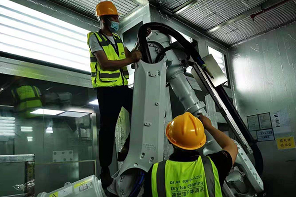 生產設備在清洗保養時,大多需要停機,拆卸,清洗,安裝,有的甚至需要等待冷卻,干燥等步驟,造成大量時間浪費,如果有一種設備可以在線清洗,可以為廠商節省大量的停機時間,干冰清洗設備